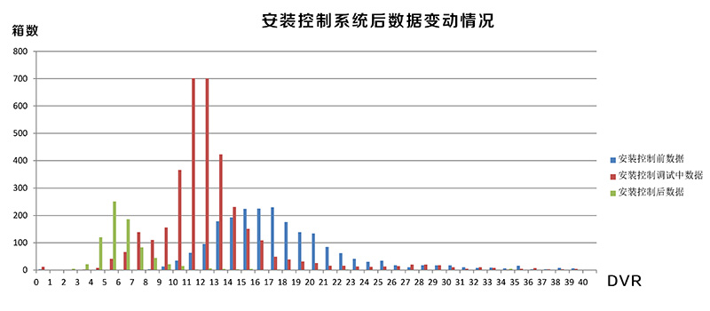本儀器的控制性能滿(mǎn)足YC147/2010 8.3對(duì)卷煙煙箱DVR合格的要求,正常穩(wěn)定生產(chǎn)情況下合格煙箱(DVR小于10)占總煙箱的85%以上。